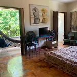 Os quartos têm vista para o jardim e apresentam confortos como o ferro e tábua de passar, ferro de passar. Banheiros privados com banheira e chuveiro também são apresentados.